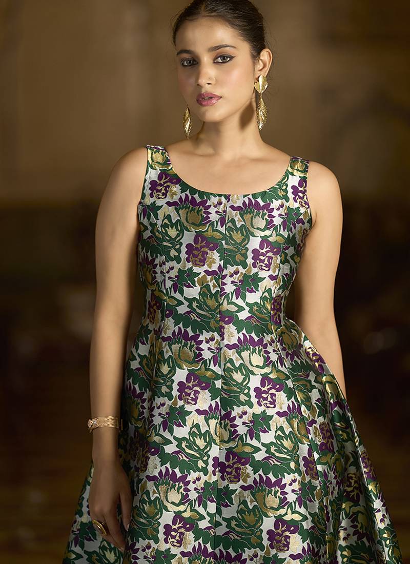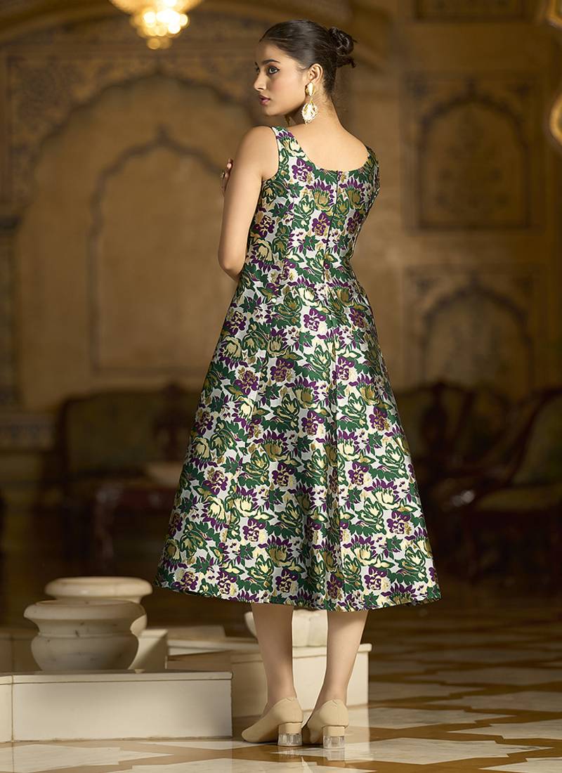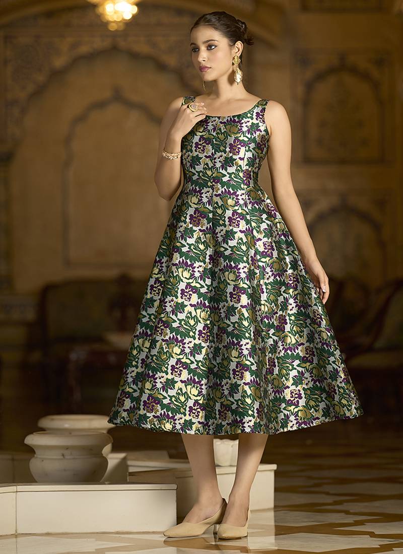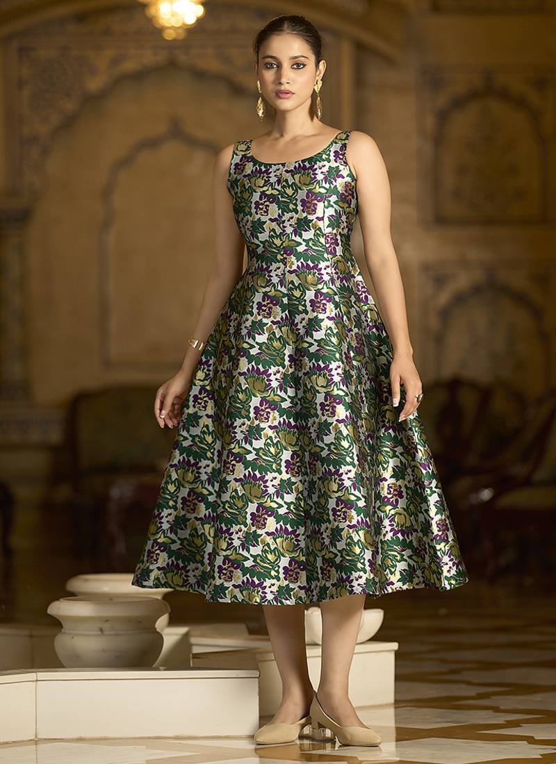 | Product Description | Gracefully Crafted In Luxurious Jacquard Fabric, This Brocade Dress Showcases Intricate Zari And Contrast Thread Weaving That Lends A Timeless Charm. Designed With A Classic Round Neckline, An A Line Silhouette, And A Flowy Flared Hemline, It Blends Tradition With Elegance. The Back Zip Closure Ensures Ease Of Wear, Making It A Perfect Choice For Festive And Celebratory Occasions. |