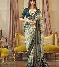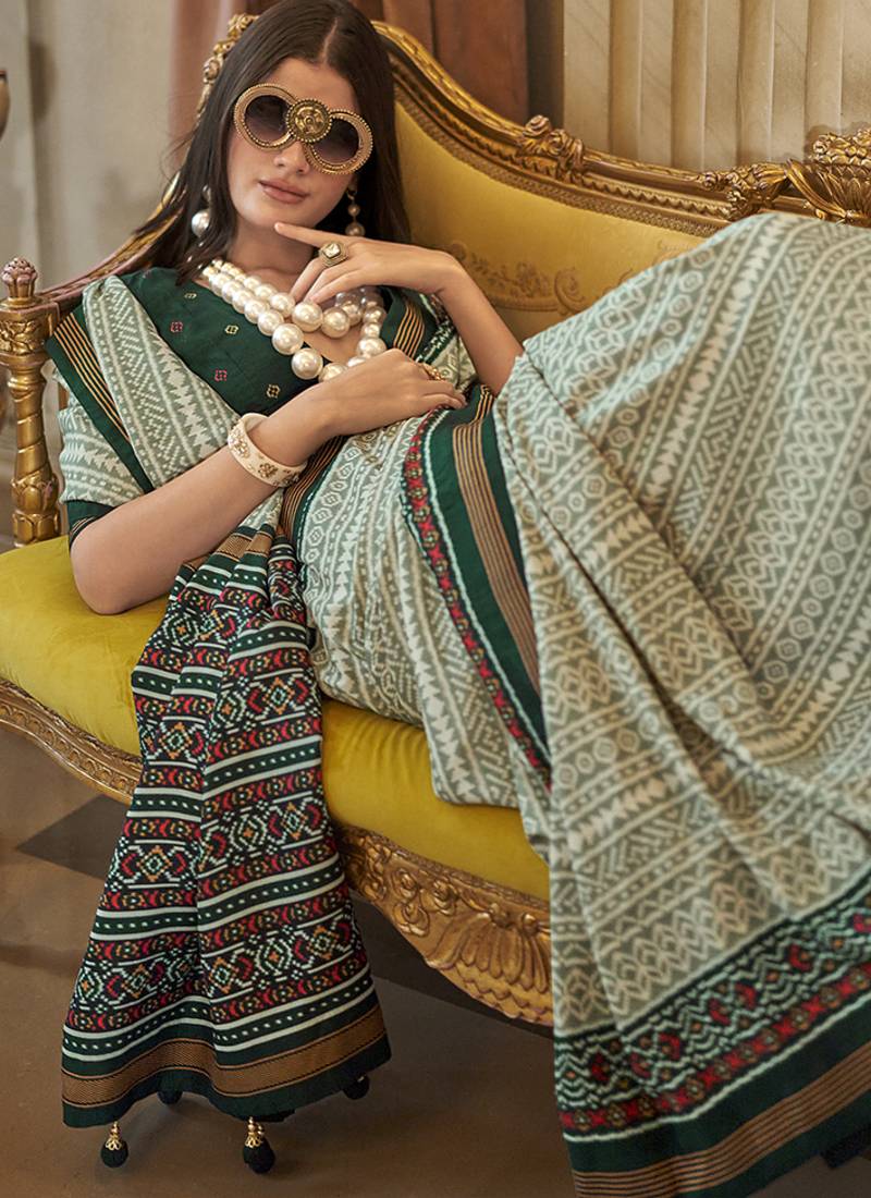 Green printed silk blend party contemporary saree