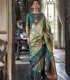 Green zari woven work silk blend indian traditional wear saree