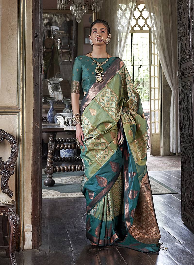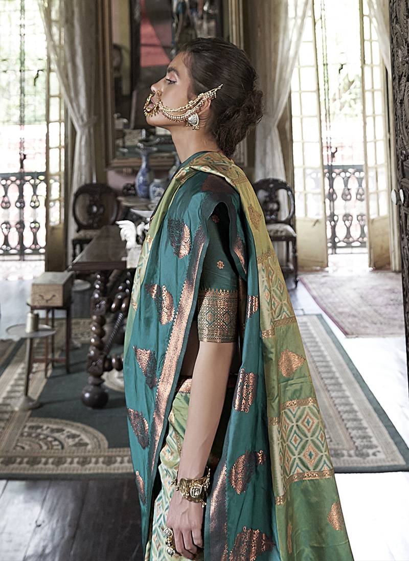 Product Name | Green Zari Woven Work Silk Blend Indian Traditional Wear Saree | |