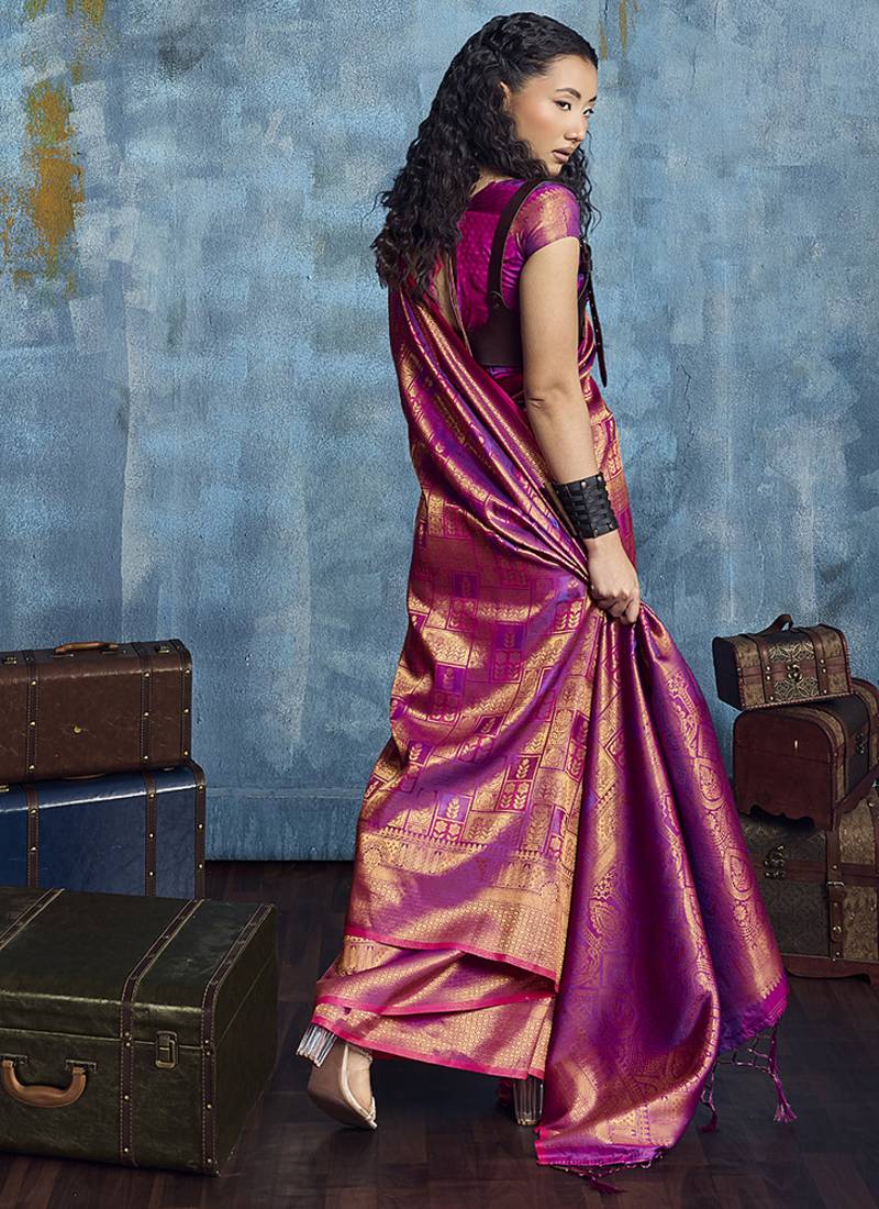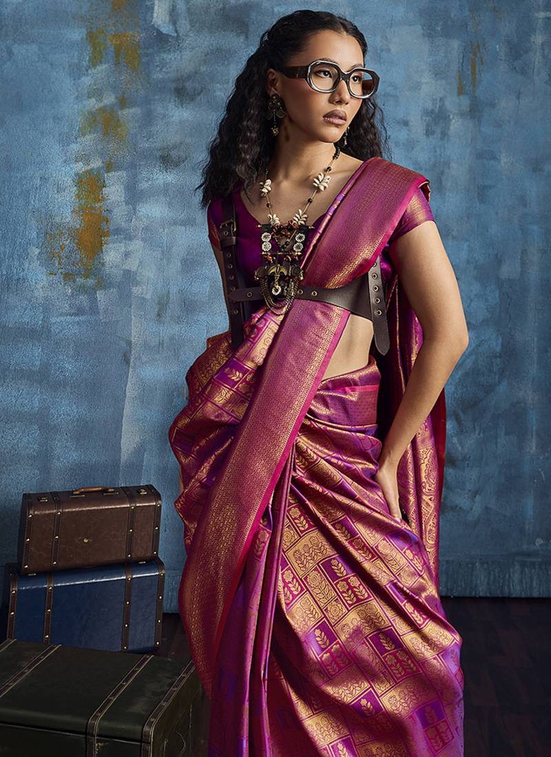 Handloom silk blend purple weaving saree