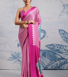 Hot pink printed satin saree
