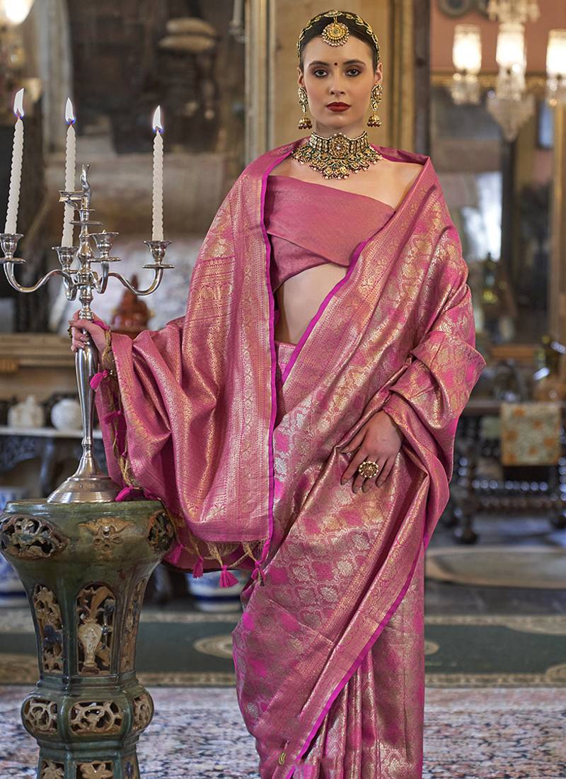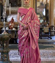 Kanjivaram silk blend classic saree with woven work for women in pink
