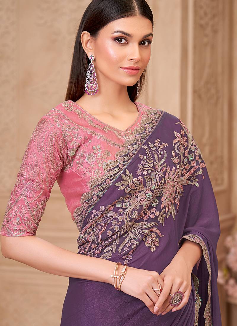 | Product Name | Lavender Color Georgette Embroidered Fancy Designer Saree | |