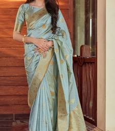 Light cyan woven banarasi silk saree with blouse
