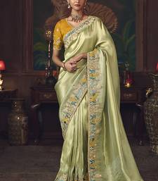 Light green zari woven silk blend embroidered saree for wedding wear