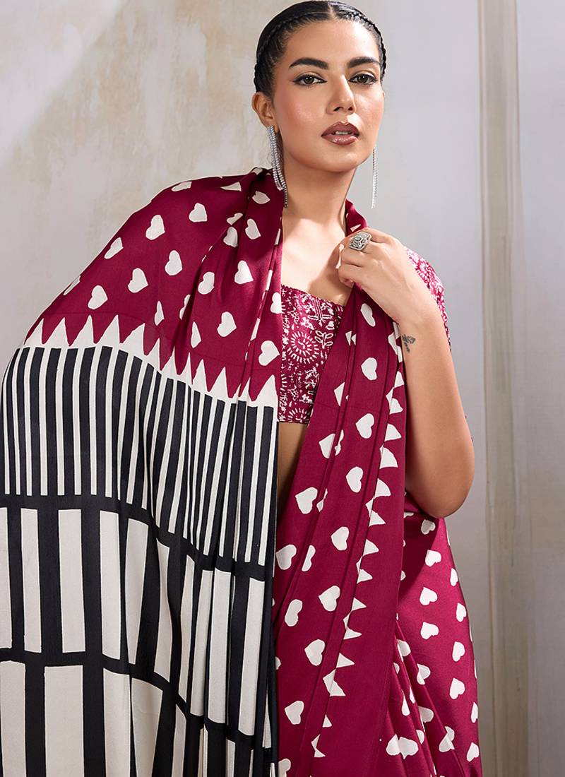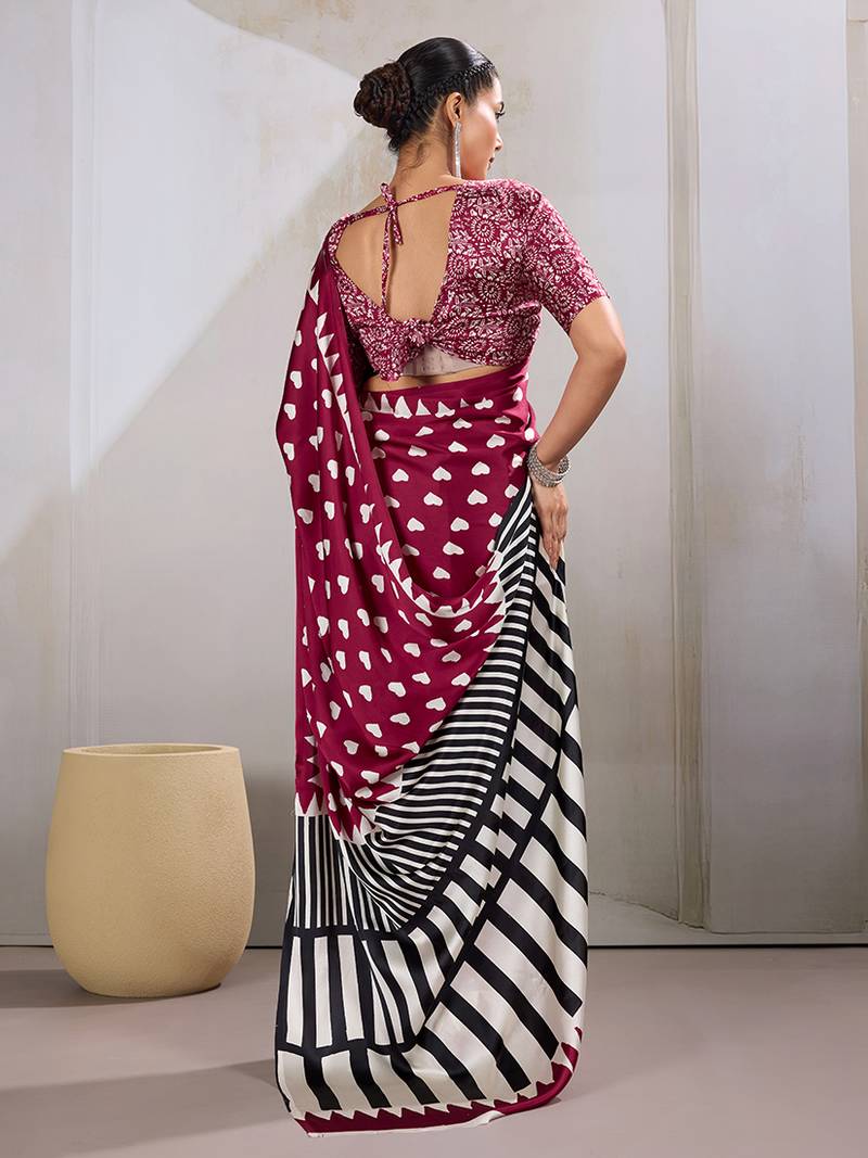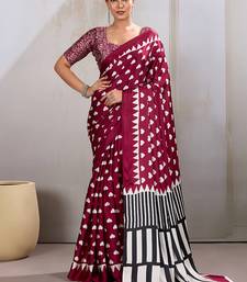 Maroon printed satin saree