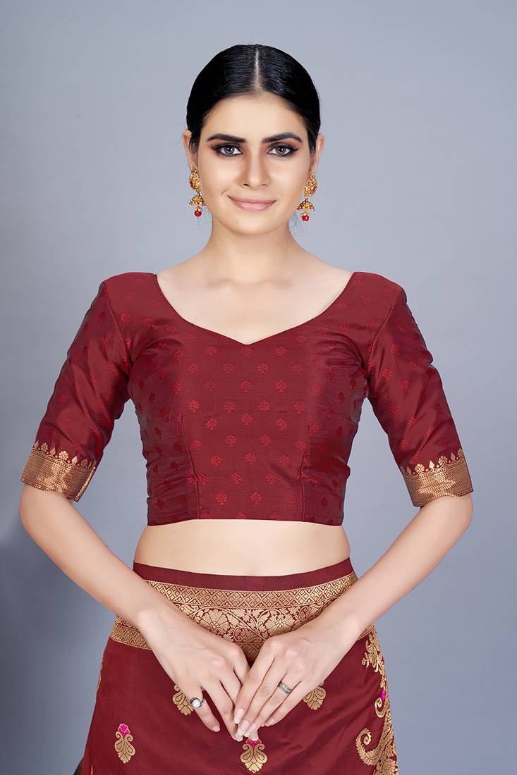 | • | Blouse | : | Color- Maroon / Fabric- Banarasi Silk |