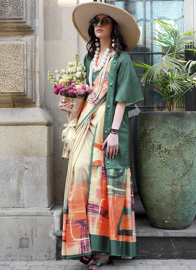 This Pretty Piece Is A Fairy Tale That Begins To Unfold As You Reveal Your Beauty In It. Make An Adorable Statement In This Smashy Multi Colour Silk Blend Classic Saree. This Attire Is Beautifully Adorned With Digital Print Work. Comes With Matching Blouse. (Slight Variation In Color, Fabric & Work Is Possible. Model Images Are Only Representative.)