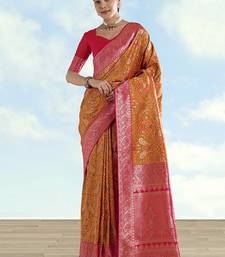 Mustard faux banarasi silk saree with traditional paisley weaves