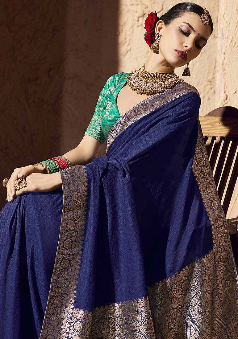 | Product Name | Navy Blue Faux Crepe Georgette Zari Weaving Work Saree | |
