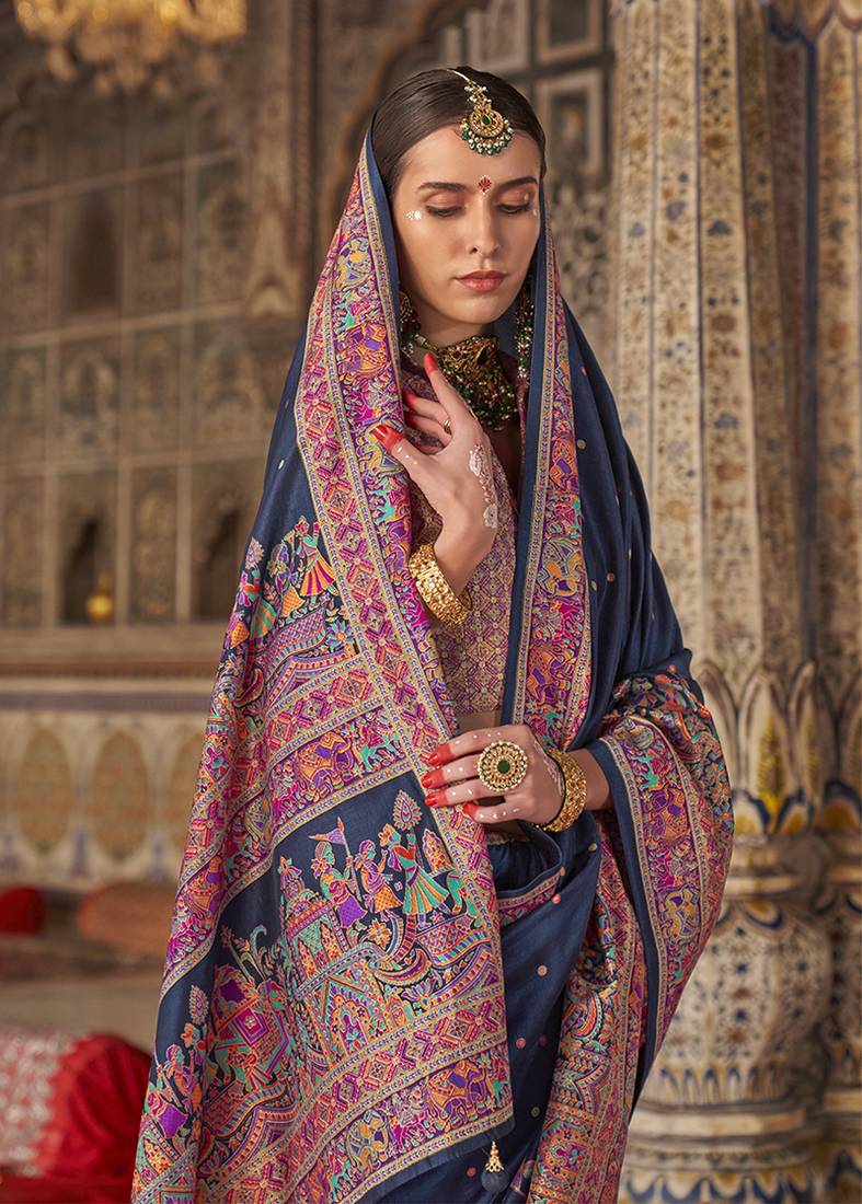 | • | Saree | : | Color- Navy Blue / Fabric- Silk Blend |