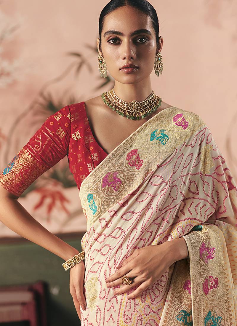 | Product Name | Off White Bandhej Weaving Work Faux Khaddi Georgette Saree | |