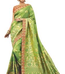 Parrot green woven silk saree with blouse