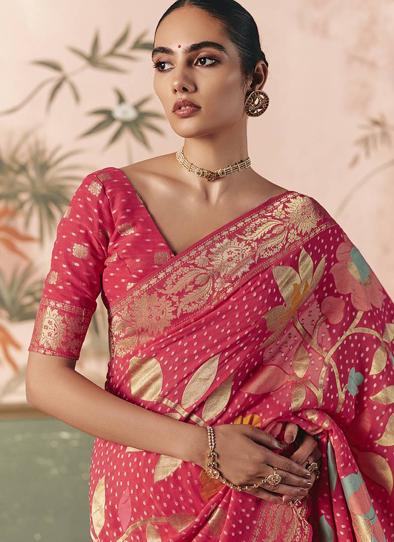 | Product Name | Pink Bandhej Weaving Work Faux Khaddi Georgette Saree | |