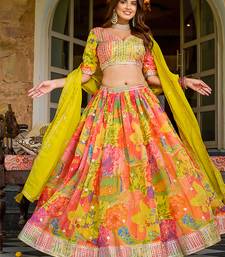 | Product Description | Everyone Will Admire You When You Wear This Clad To Elegant Affairs. Stand Out From Rest With This Multi Colour Art Silk Designer Lehenga Choli. This Attire Is Encrafted With Embroidered And Print Work. Comes With Matching Choli And Dupatta. Note: Dupatta Size Comes In 2 Mtr. (Slight Variation In Color, Fabric & Work Is Possible. Model Images Are Only Representative.) |
