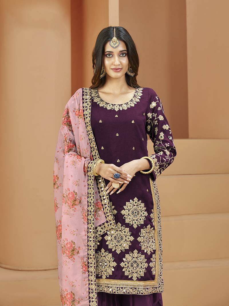 | Product Description | Monjolika Fashion Create A Smoldering Impact By This Purple Art Silk Salwar Kameez. It Is Uniquely Crafted With Embroidered And Mirror Work. Comes With Matching Bottom And Dupatta |