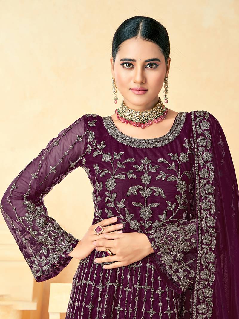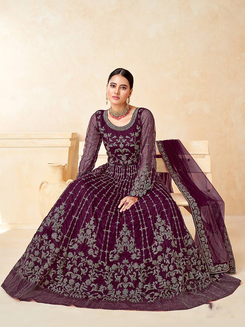 | Product Description | Add A Young Burst Of Shade For Any Wardrobe With This Purple Color Net Long Length Anarkali Salwar Suit. The Embroidered Work Seems To Be Chic And Perfect For Engagement, Sangeet And Wedding. Comes With Matching Santoon Bottom And Net Dupatta |