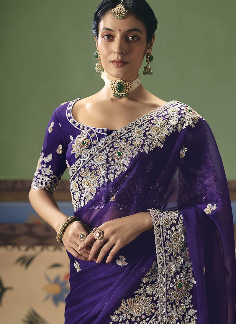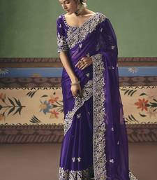Purple fancy fabric embroidered saree