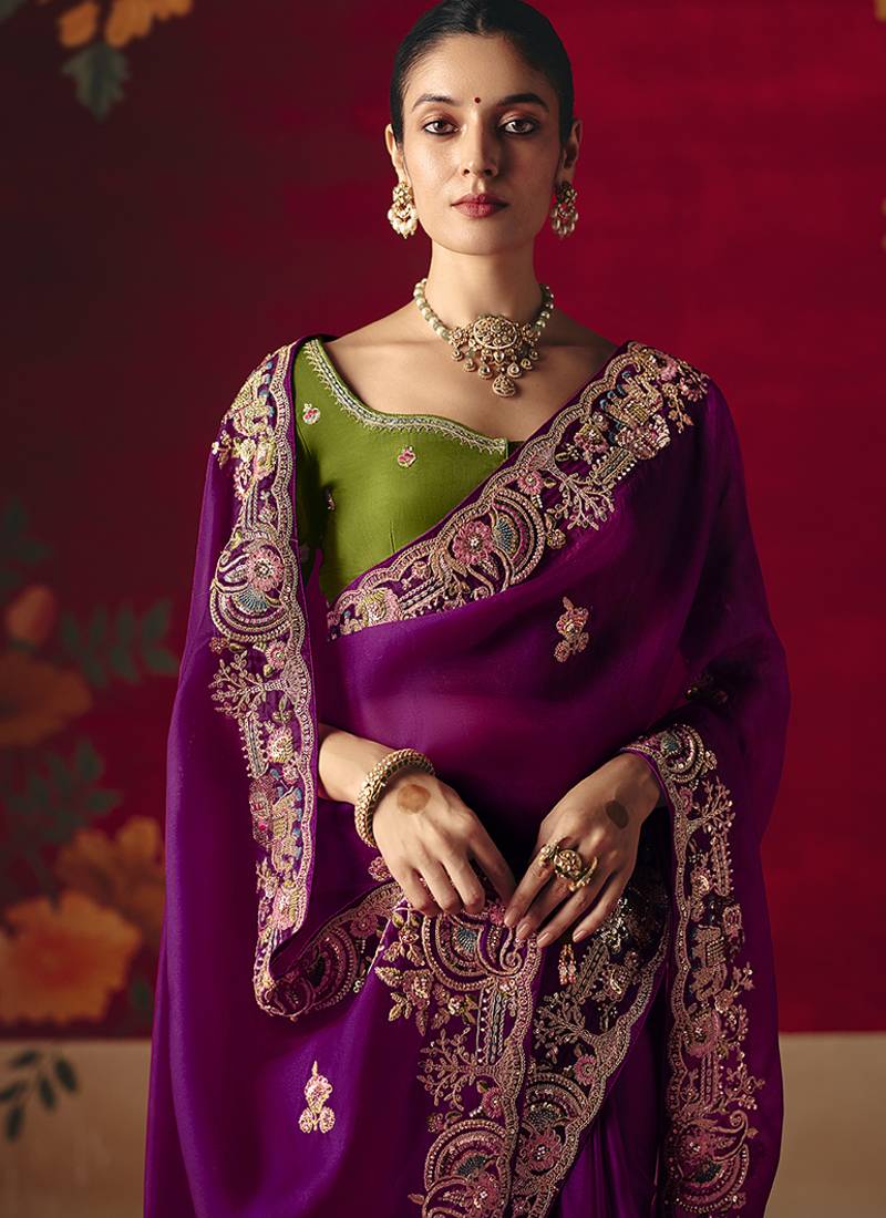 | Product Name | Purple Fancy Fabric Embroidered Thread Work Classic Saree | |