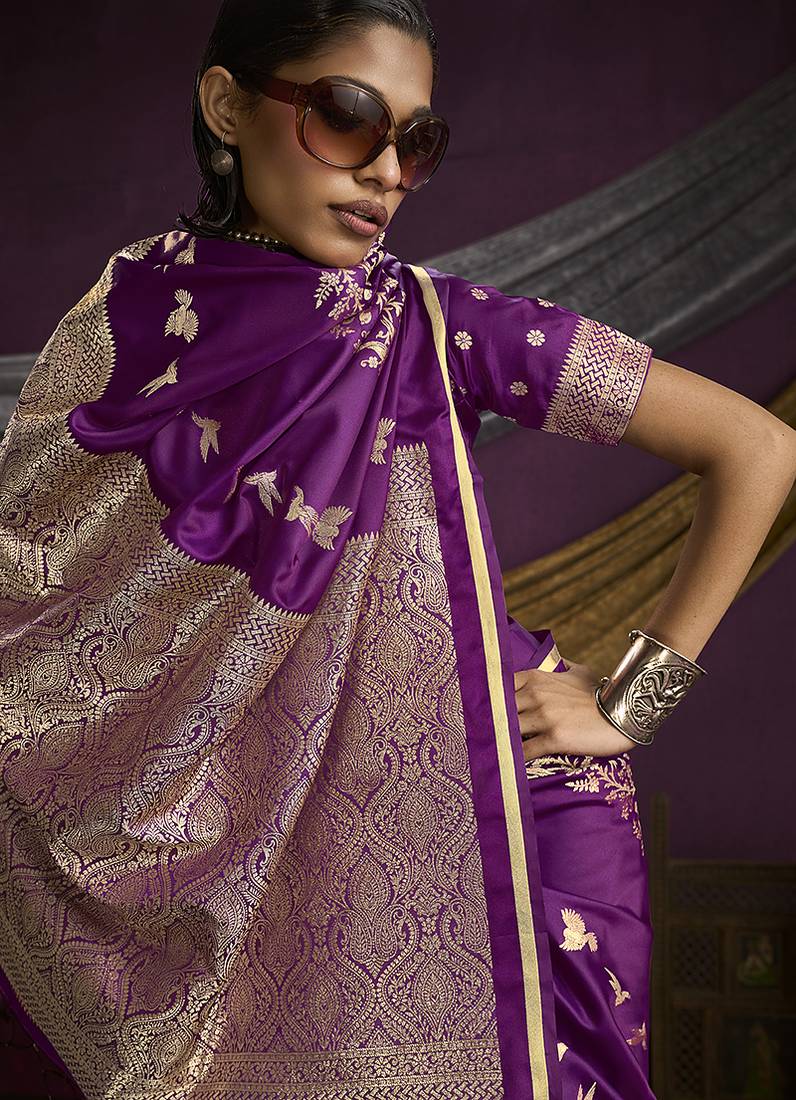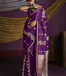 Purple handloom silk blend weaving saree