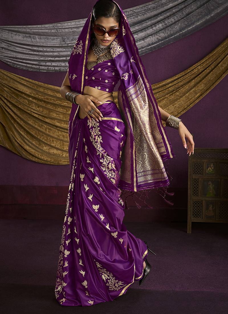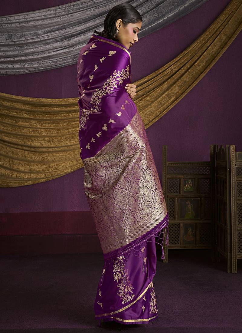 | • | Saree | : | Color- Purple / Fabric- Silk Blend |