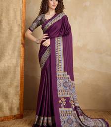 Purple printed satin saree
