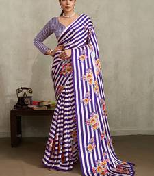 Purple printed satin saree