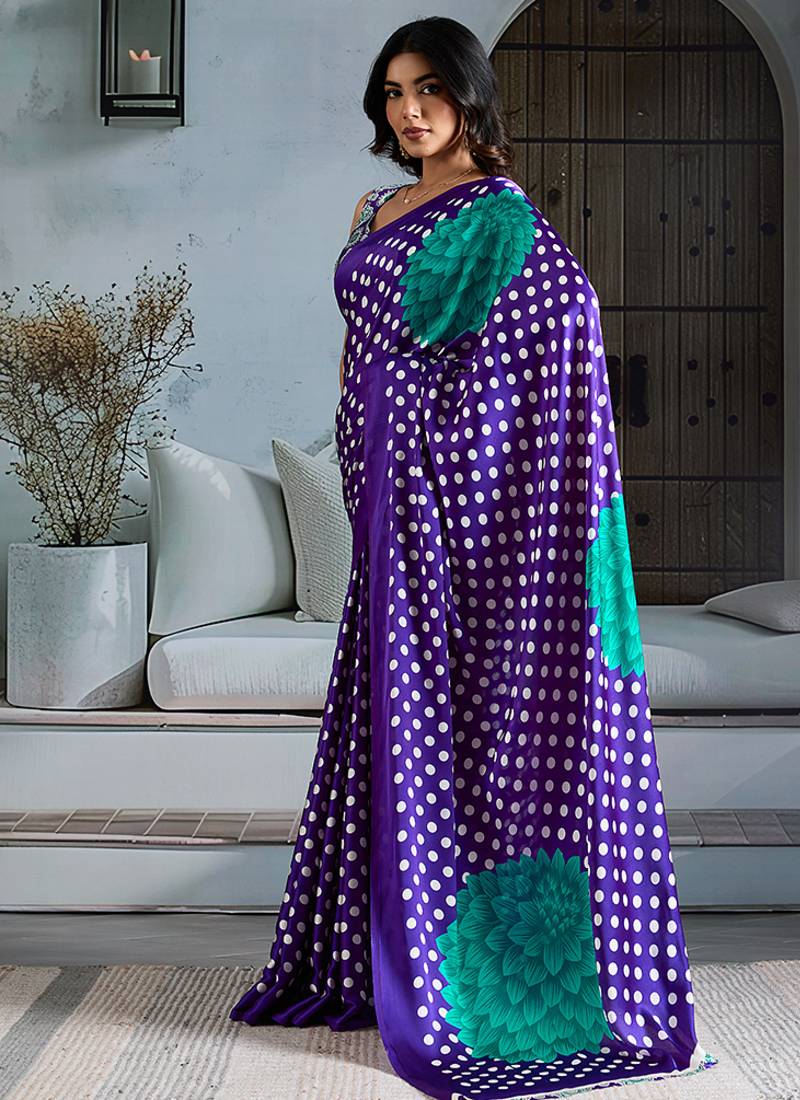 | Product Description | Real Magnificence Comes Out Of Your Dressing Design With This Purple Satin Classic Saree. The Ethnic Print Work For The Apparel Adds A Sign Of Magnificence Statement With A Look. Comes With Matching Blouse. (Slight Variation In Color, Fabric & Work Is Possible. Model Images Are Only Representative.) |
