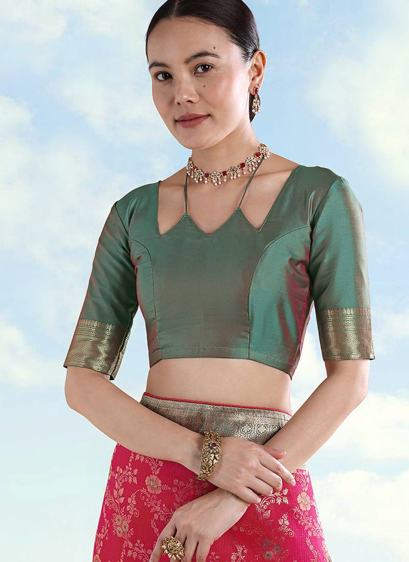 | • | Blouse | : | Color- Olive / Fabric- Faux Banarasi Silk |