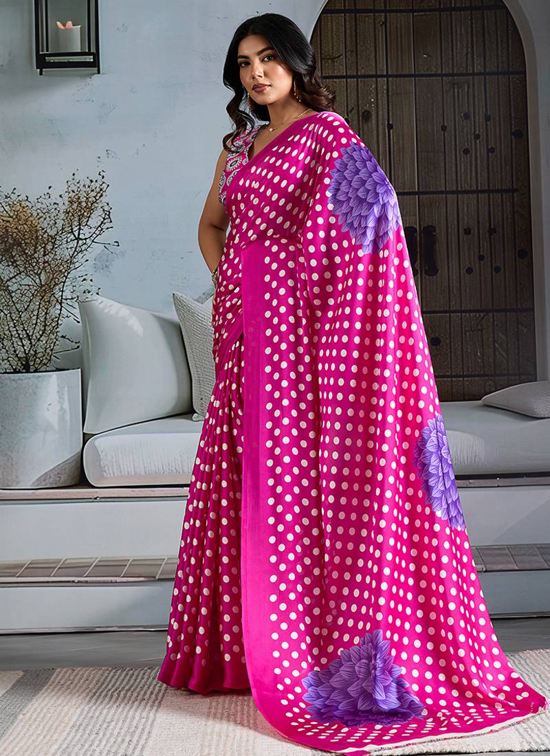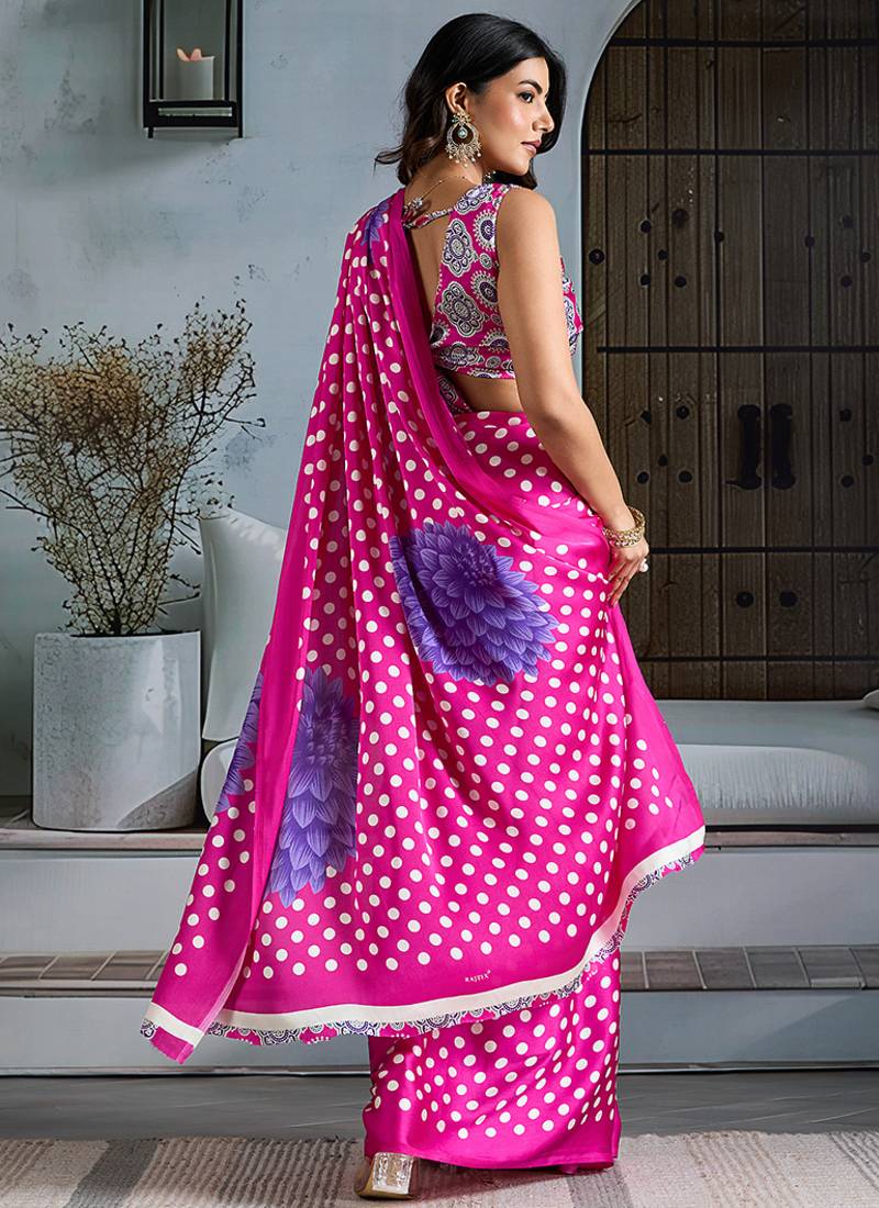 Rani pink satin printed saree