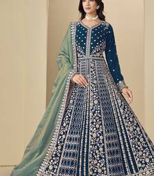 Teal blue velvet salwar kameez with embroidered work semi stitched