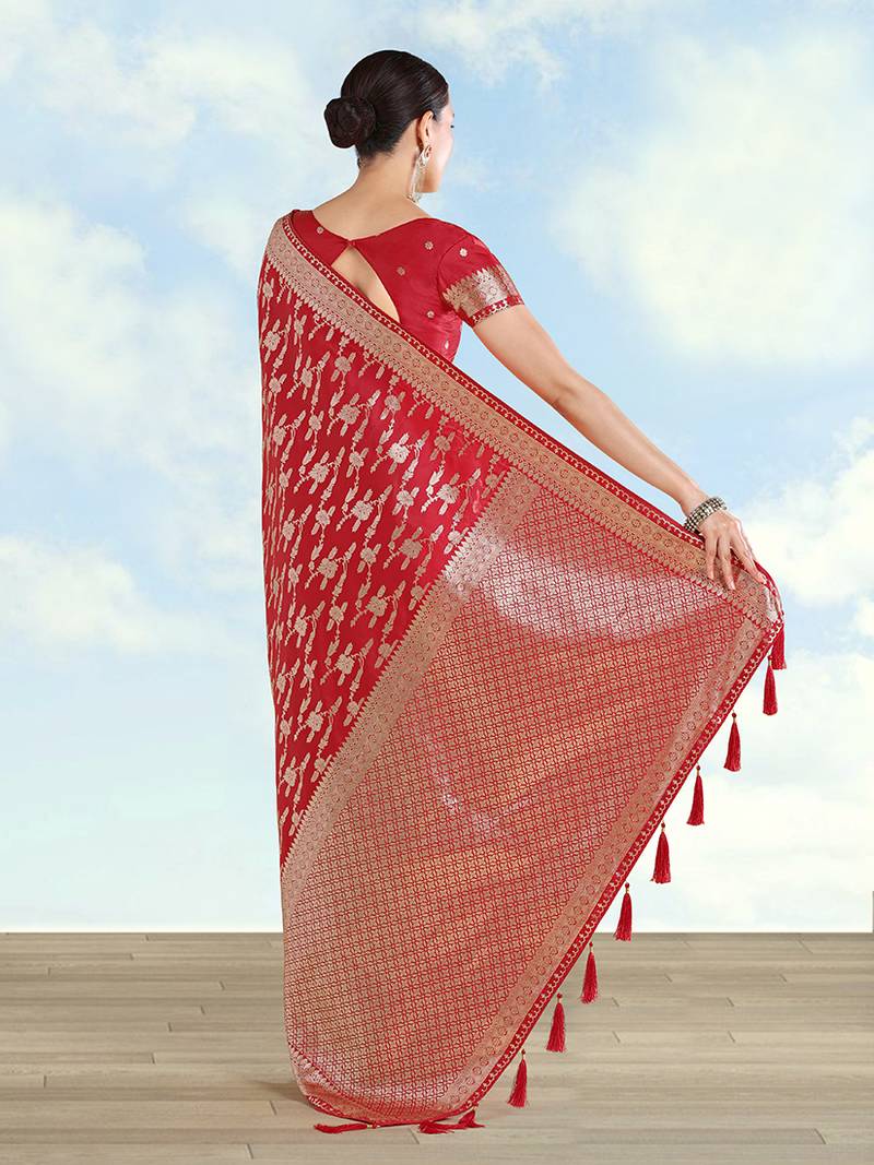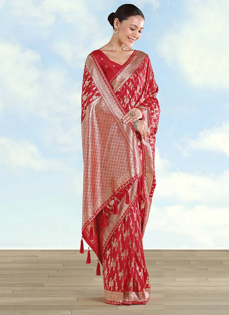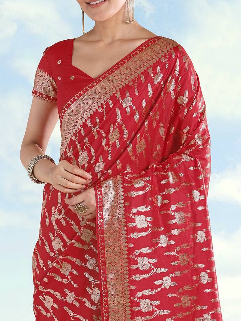 Red banarasi silk zari woven saree