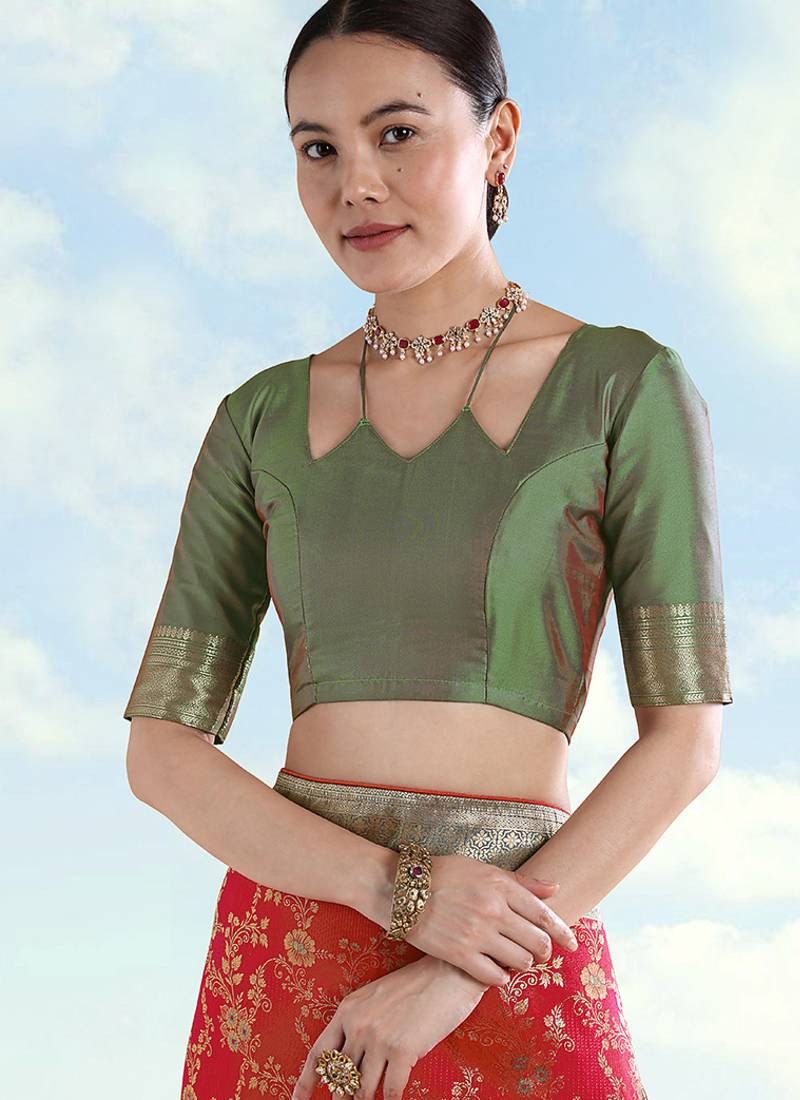 | • | Blouse | : | Color- Green / Fabric- Faux Banarasi Silk |