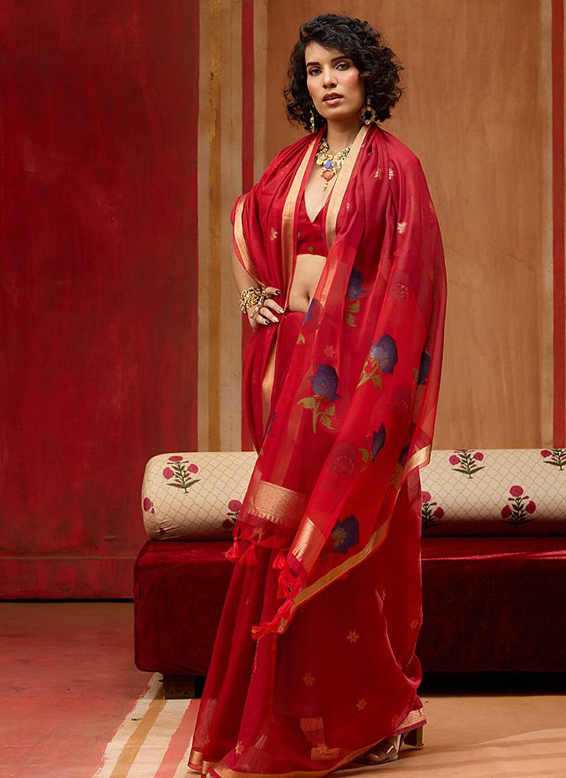| Product Name | Red Handloom Cotton Blend Weaving Classic Saree | |