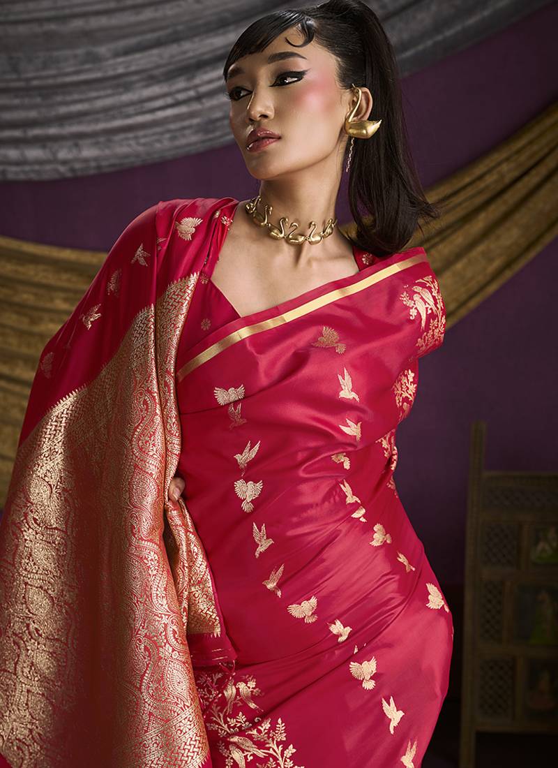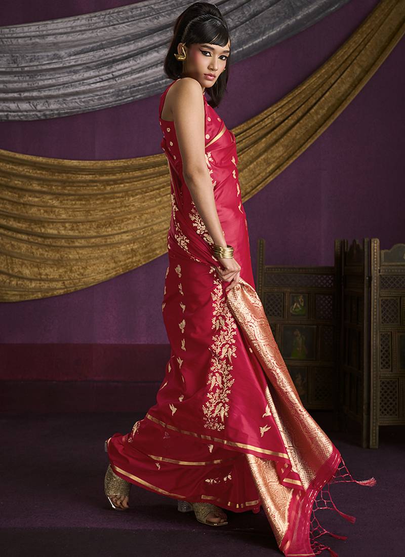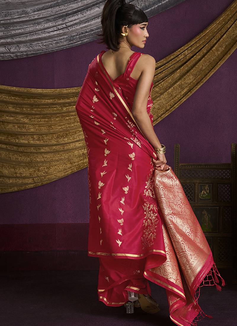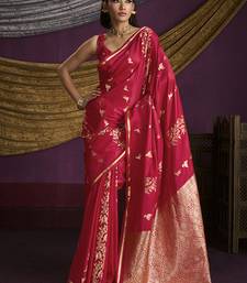 Red handloom silk blend weaving saree