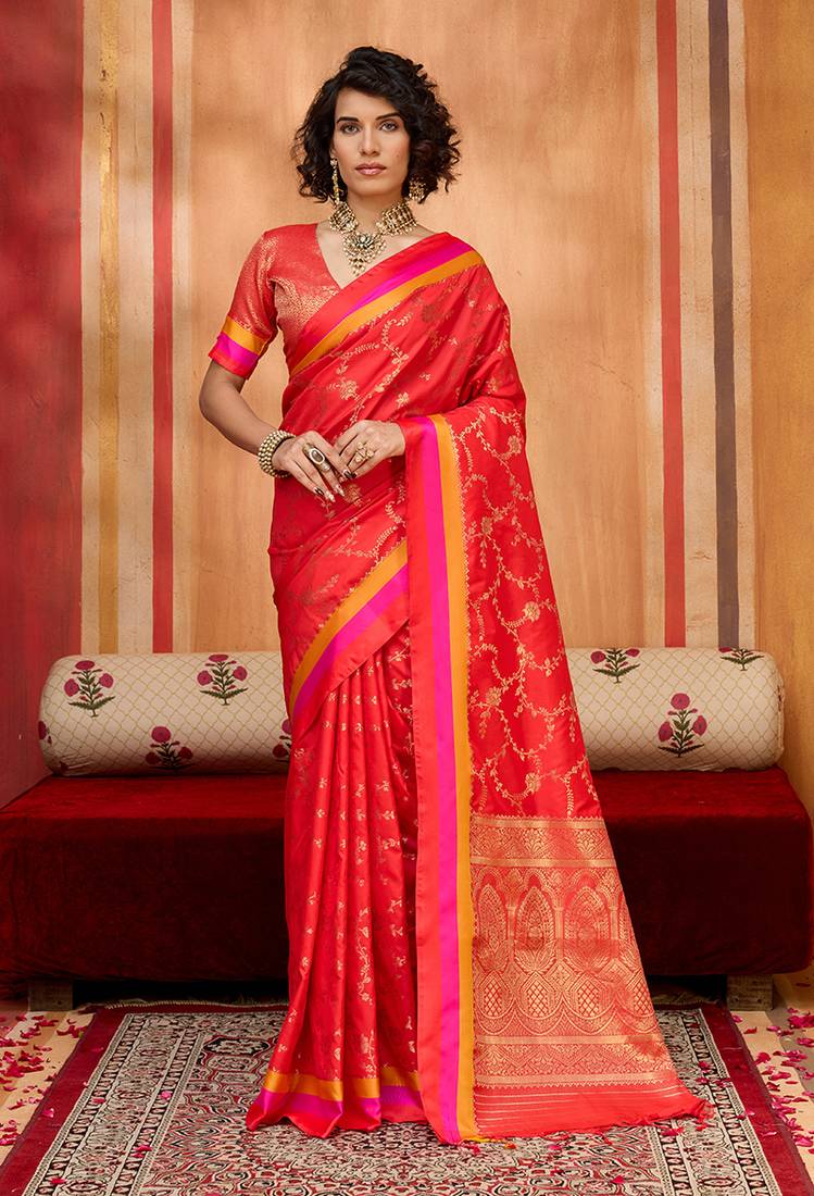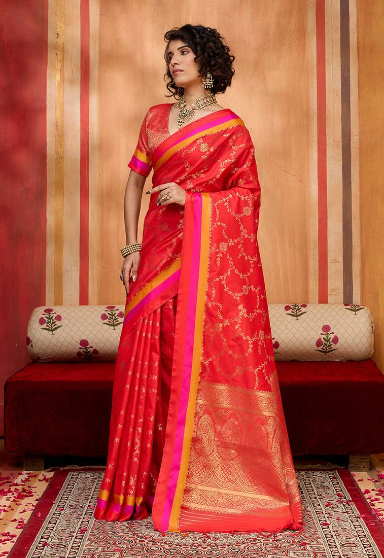 | Product Name | Red Weaving Satin Art Silk Festival Trendy Saree | |