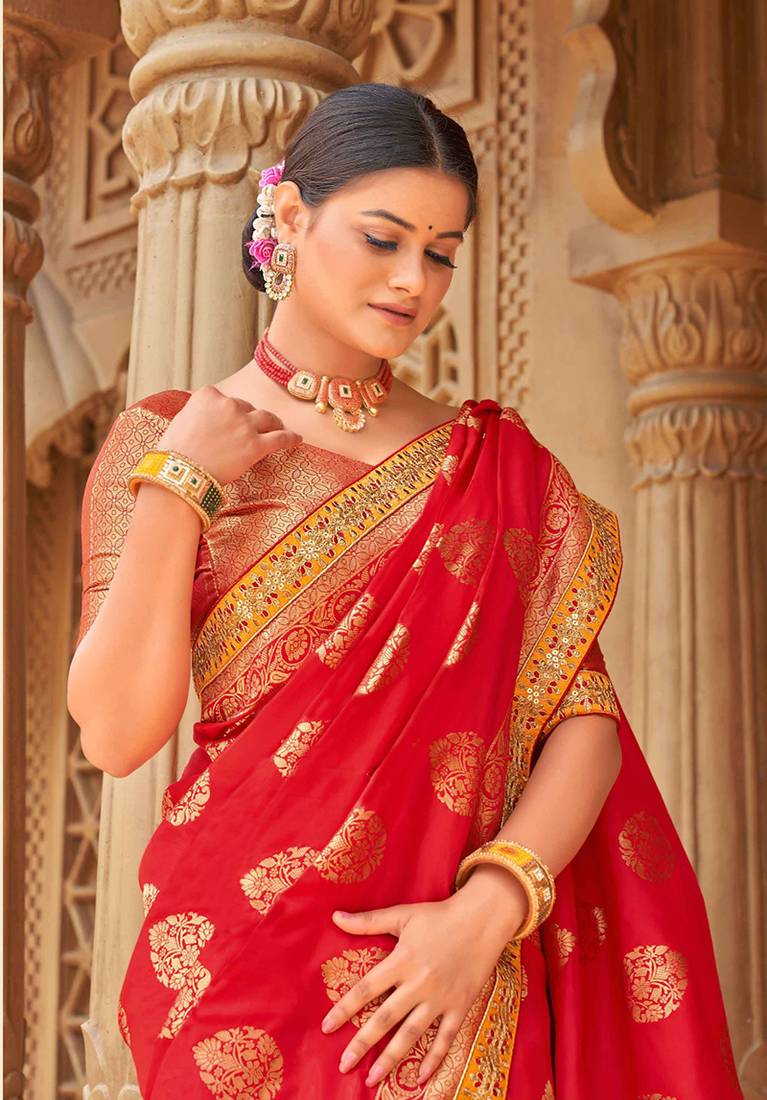 | Product Description | Monjolika Fashion Presents We Unfurl Our The Intricacy And Exclusivity Of Our Creations Highlighted With This Stunning Red Color Banarasi Silk Classic Saree. The Ethnic Cord, Embroidered, Resham And Zari Work With The Dress Adds A Sign Of Splendor Statement For The Look. Comes With Matching Red Color Blouse. |