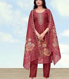 Rust red simar kurta set with floral print stitched