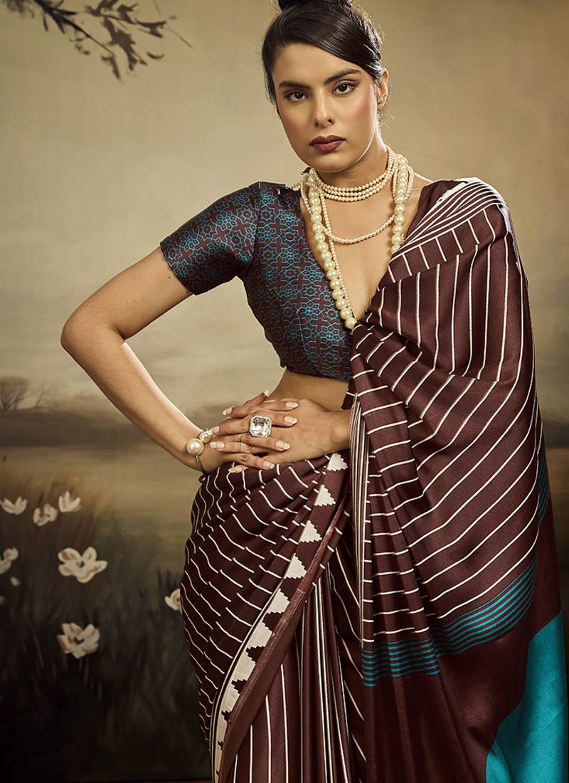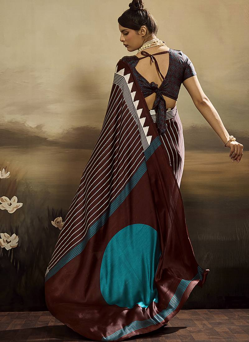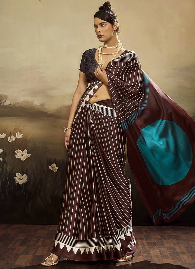 Satin brown printed saree