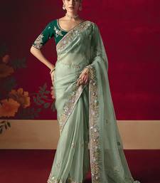 Sea green fancy fabric embroidered thread work classic saree