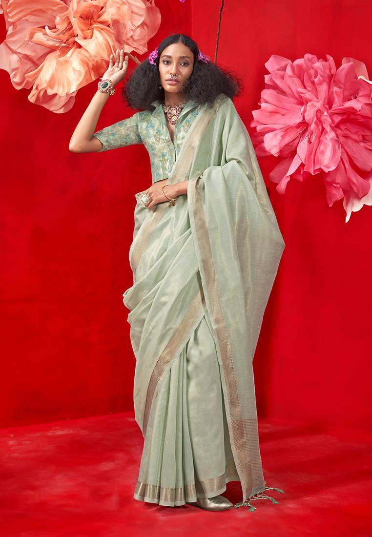 Sea green tissue weaving zari saree
