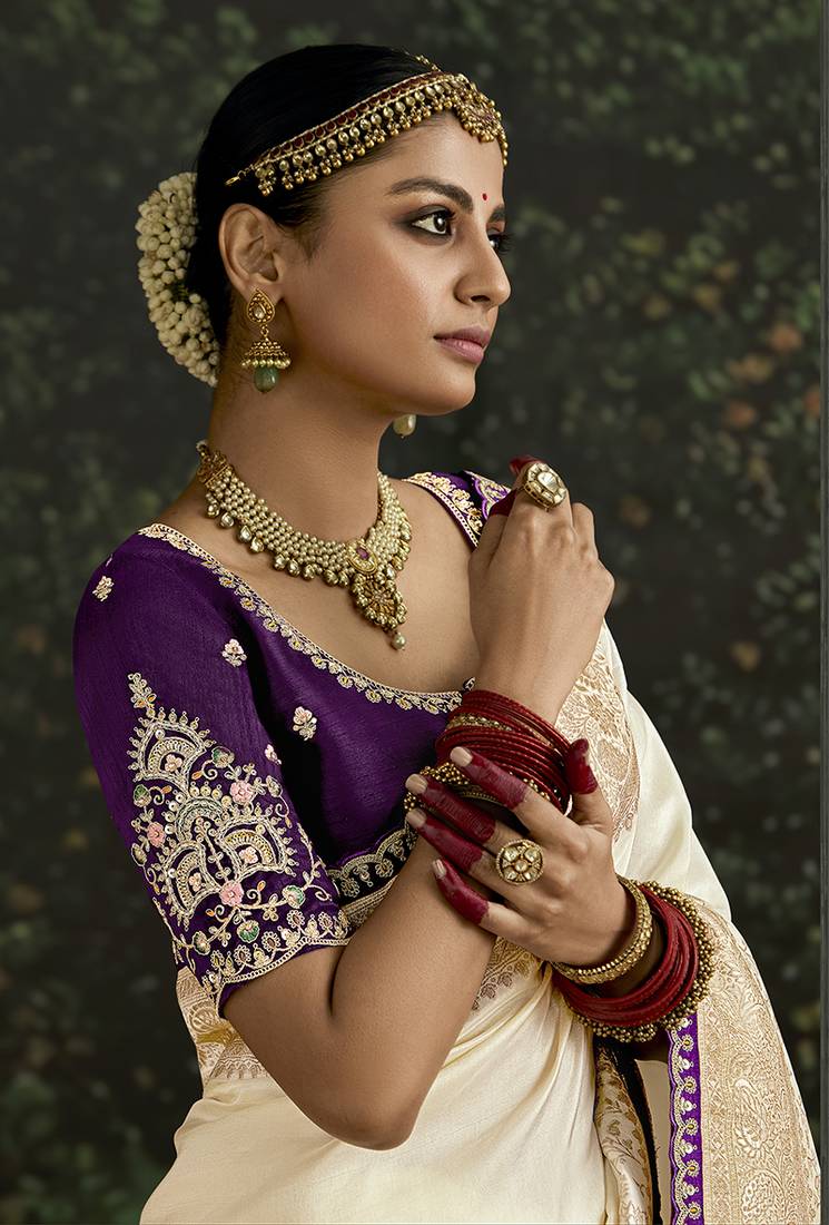 | Product Name | Sequins Embroidered Border Work Dola Silk Cream Saree | |