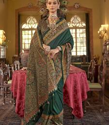 Silk blend dark green printed contemporary saree