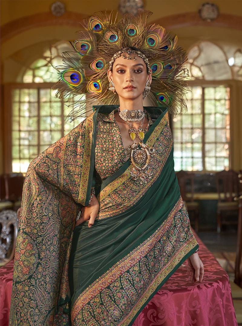 | Product Name | Silk Blend Dark Green Printed Contemporary Saree | |