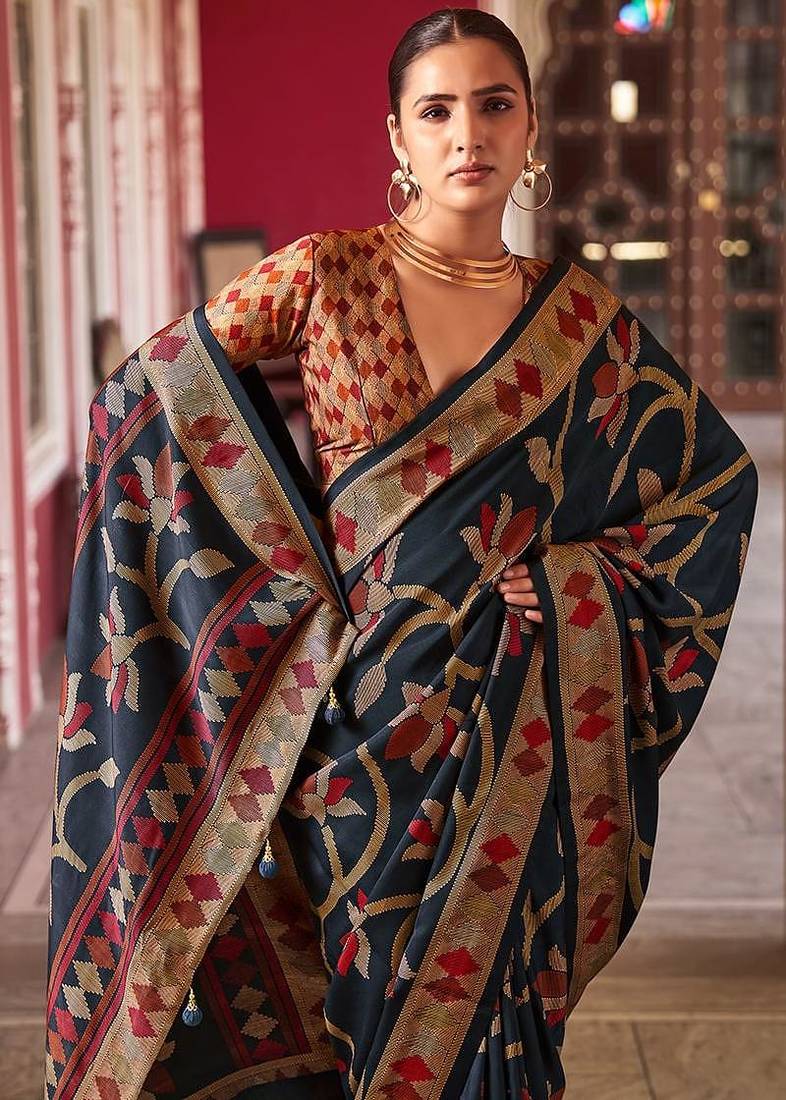 | • | Saree | : | Color- Navy Blue / Fabric- Silk Blend |