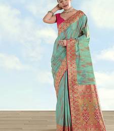 Sky blue color faux banarasi tissue silk paithani woven saree