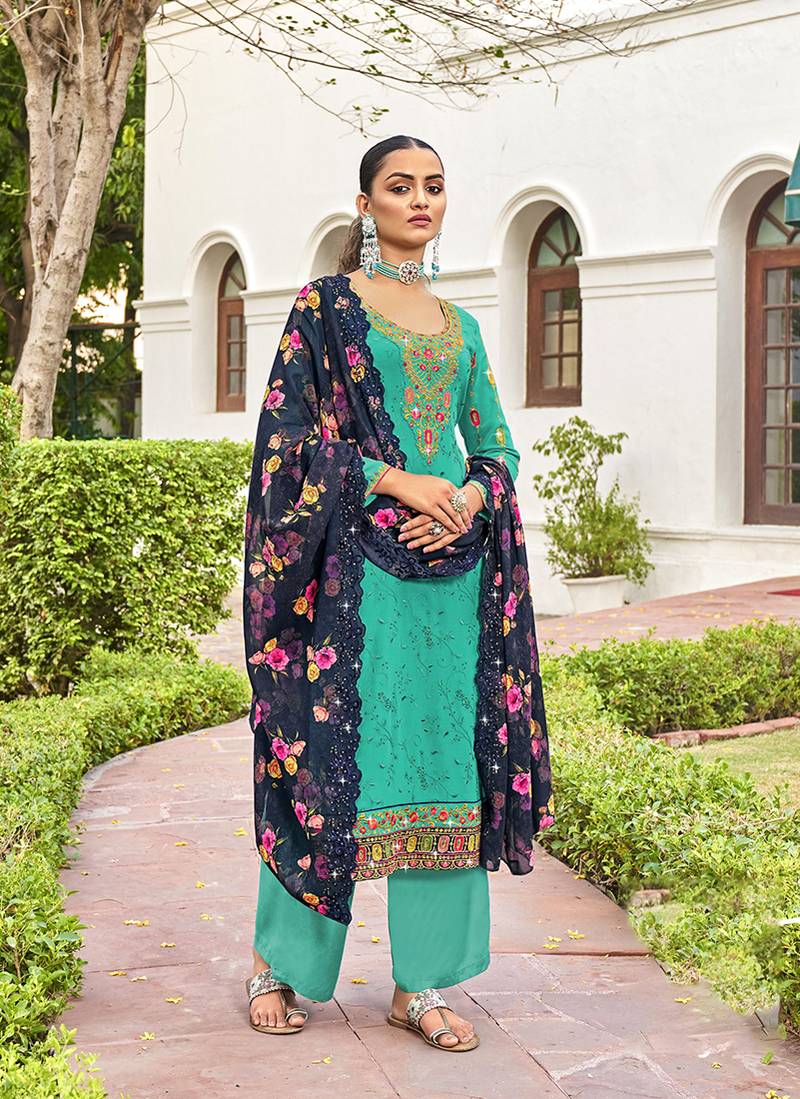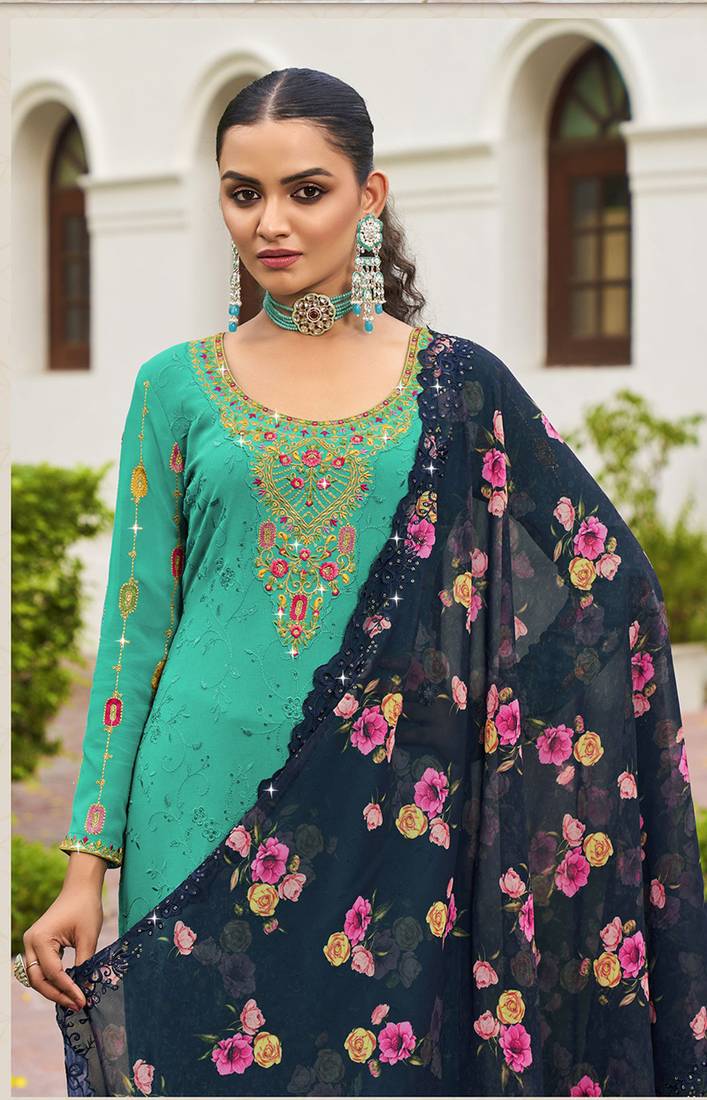 Product Name | Sky Blue Color Georgette Embroidered Straight Salwar Suit | |