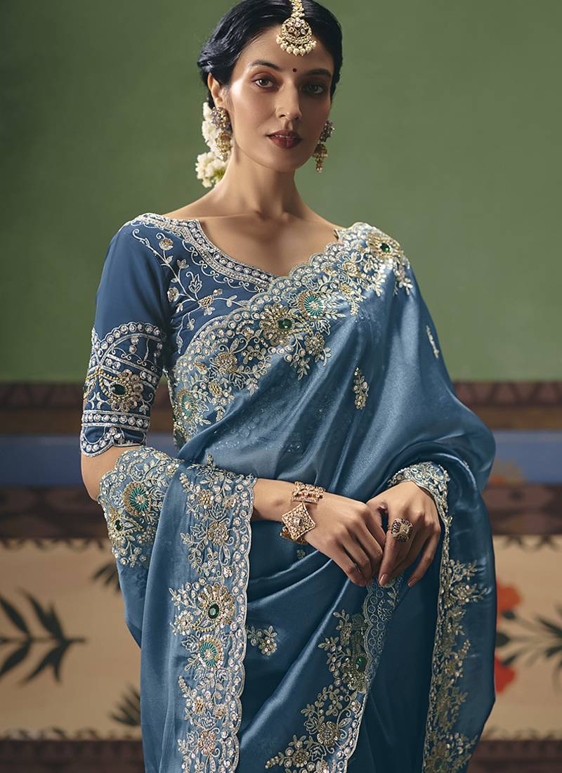 | Product Name | Sky Blue Fancy Fabric Embroidered Saree | |