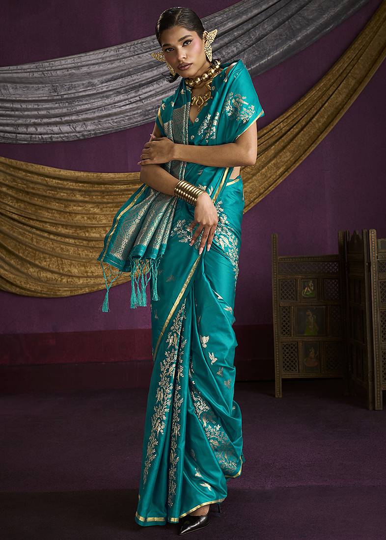 | • | Saree | : | Color- Teal / Fabric- Silk Blend |